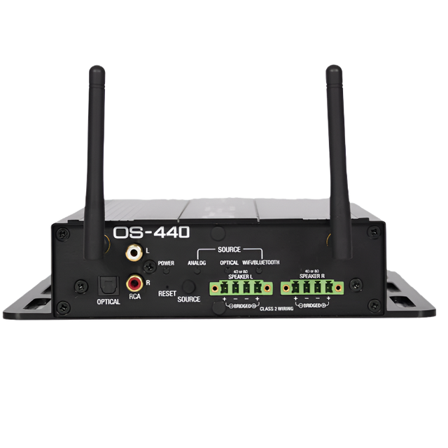 Your smart home deserves a smart yard.  The OS-440 is an outdoor amplifier, allowing unprecedented freedom when designing outdoor audio systems. Without being tethered to the house, the OS-440 can wirelessly connect to the home’s network and function as a certified Google Chromecast device. On-board Bluetooth functionality and a closed, stand-alone Wi-Fi Direct mode rounds out the wireless connectivity options.