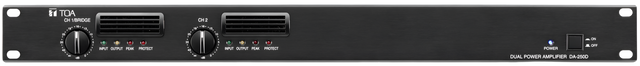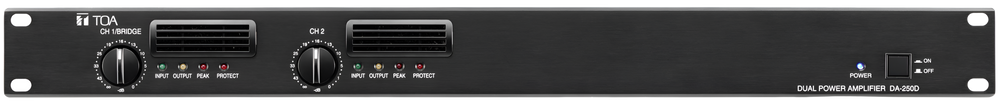 The DA-250DH is a 2-Channel Digital Power Amplifier designed for 70 V line high-impedance distribution and features lightweight, compact, high-power output, and high efficiency. It delivers 250 W × 2 channels (19.6 Ω output) using a switching power supply. Each channel is equipped with an independent power section. It can be electrically isolated from the high-impedance speaker system by attaching the MT-251H Output Transformer (optional). It can be mounted in an EIA Standard equipment rack (1 unit size).