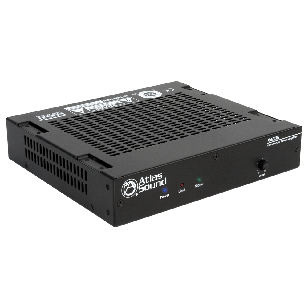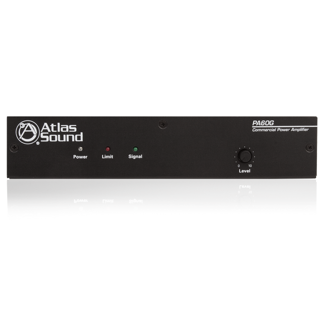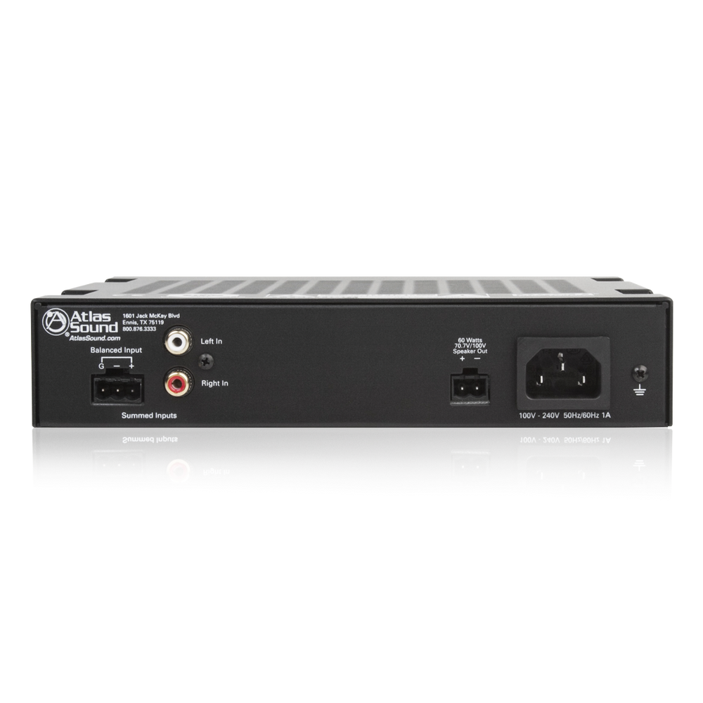 Small and compact, and engineered for efficiency and reliability, the AtlasIED PA60G amplifier is the perfect choice for paging or background music (BGM) systems, small to medium sound masking systems, and any applications where distributed audio is required. It provides 60W into a 70.7V/100V line and has a balanced line level input via phoenix connector and a summing unbalanced RCA input.