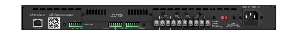 The AZA804 is ready to use out of the box in four-channel, 70V mode, with no additional configuration or network connectivity required, making them easily paired for use with AtlasIED Atmosphere signal processors.