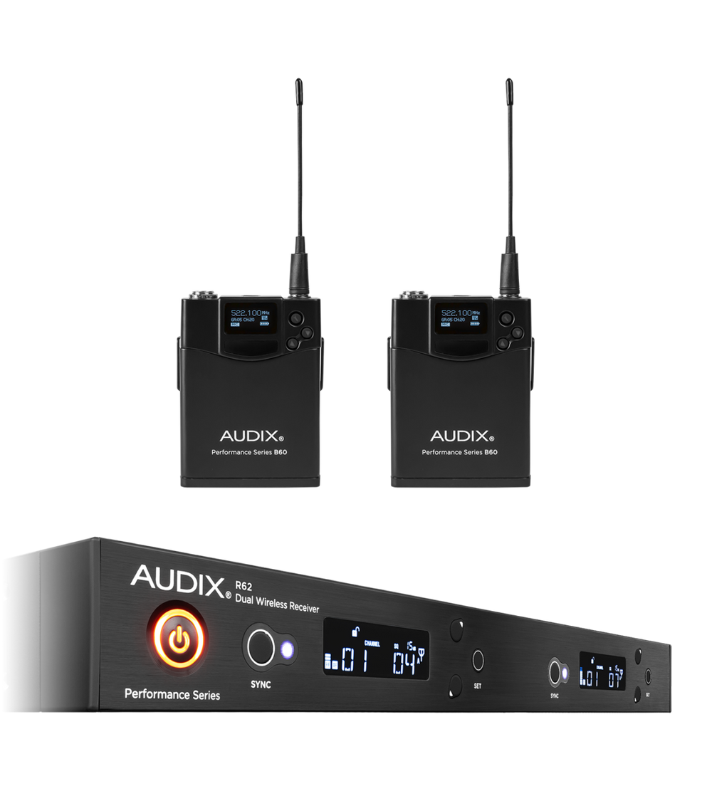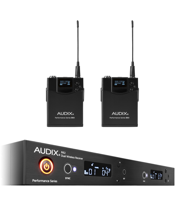 A professional true diversity lavalier wireless system featuring the B60 bodypack transmitter. B60 bodypack transmitter. This bodypack may be used with any lavalier, head-worn, or instrument microphone in the Audix line, as well as guitar and bass.