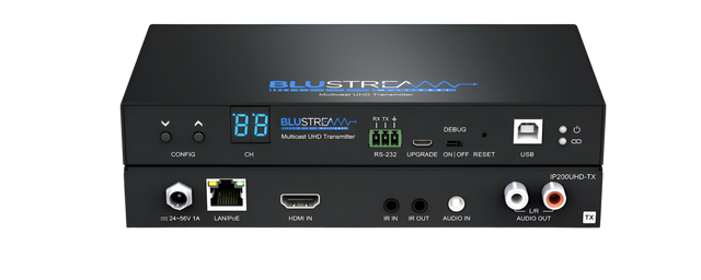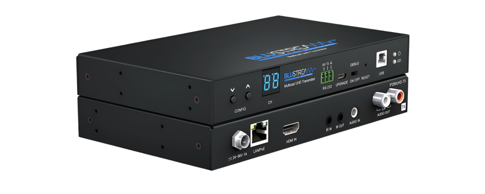 The IP200UHD-TX can be powered via PoE from the Network switch or locally should the switch not support PoE. With multiple configuration options available, the Multicast solution is ideal for both commercial and residential installations.