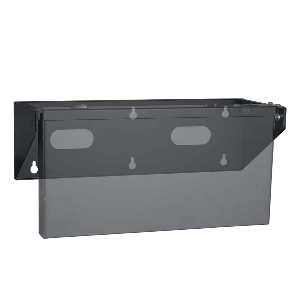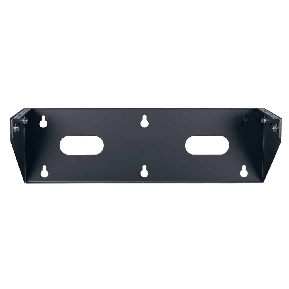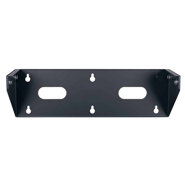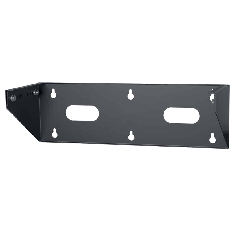 The quintessential space saving solution for one or two pieces of electronics, the VR-4 mounts to a wall or desk to hold equipment vertically or horizontally. The open frame provides 4U rack space and accommodates numerous depths. Two units can be used together for four-point mounting. Includes one pair of 10-32 threaded rails. Black powder epoxy finish.
