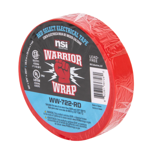 We designed WarriorWrap Specialty Tape to meet your exacting requirements and the demanding environments of electrical construction, so you can be confident every residential or commercial application can be wrapped up right. Made of 7mil thick PVC with a rubber-based adhesive, WarriorWrap 722 Select tape is rated as primary insulation for circuits of up to 600 volts.