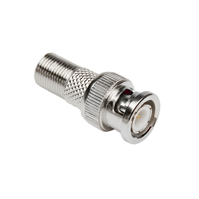 This nickel-plated coaxial adapter has an F-type female connector opposite an BNC male connector. Allows you to connect coax cable with F-type connector to BNC connector.
