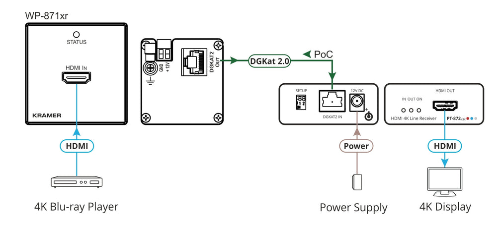 WP-871XR 4K HDR HDMI 1–Gang PoC Wall–Plate Transmitter Long Reach DGKat