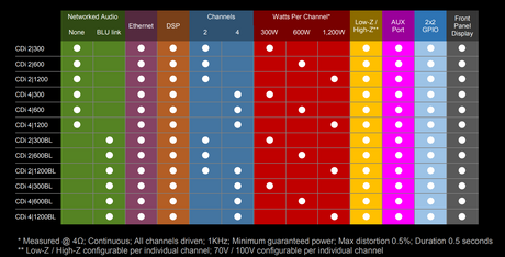 CDi4x300BL Analog + Blu Link Input, 4 Channel, 300w Per Output Channel, Amplifier