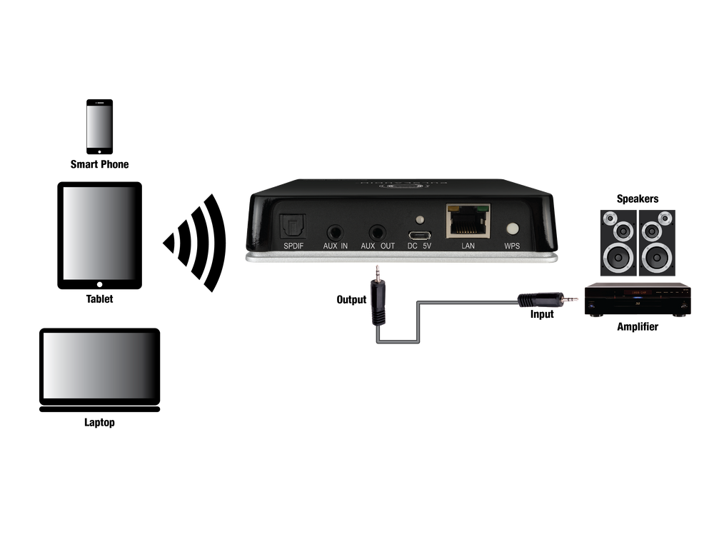 The PulseAudio PASTREAM2 is an analog and digital audio streamer that allows amplifiers and distributed audio systems to stream music over a wired or wireless internet connection. A great solution to stream music to any audio device, or create a wireless distributed audio system, all with an easy to use and intuitive app. Play and control music, downloaded or streamed from your phone, tablet, or computer. The PASTREAM2 is compatible with Airplay, and WiFi Direct (Miracast) devices that are found within the same network, allowing for songs to be shared easily in a distributed audio system.