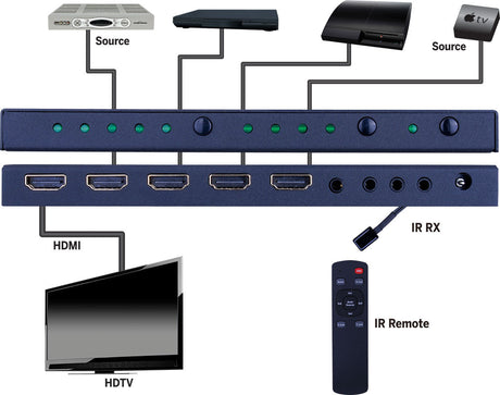 EVSW1040 HDMI 4x1 Selector Switch Multiview 1080p Seamless Switching Up/Down Scaler Audio RS232