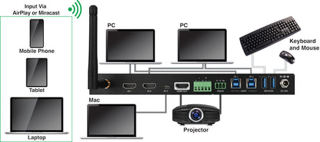 EVSW4K41 4K 4×1 Multi-Format Wireless Collaboration Switcher with Wired and Wireless Connectivity
