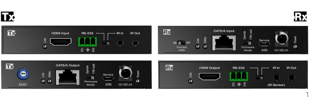 • Up/Down IR: Two channels of IR enable control to/from devices or control systems connected to Tx and Rx units