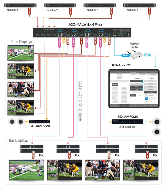 KD-MLV4x4Pro Multi-View Tiling Processor Matrix with 4 HDMI Inputs and 4 Outputs