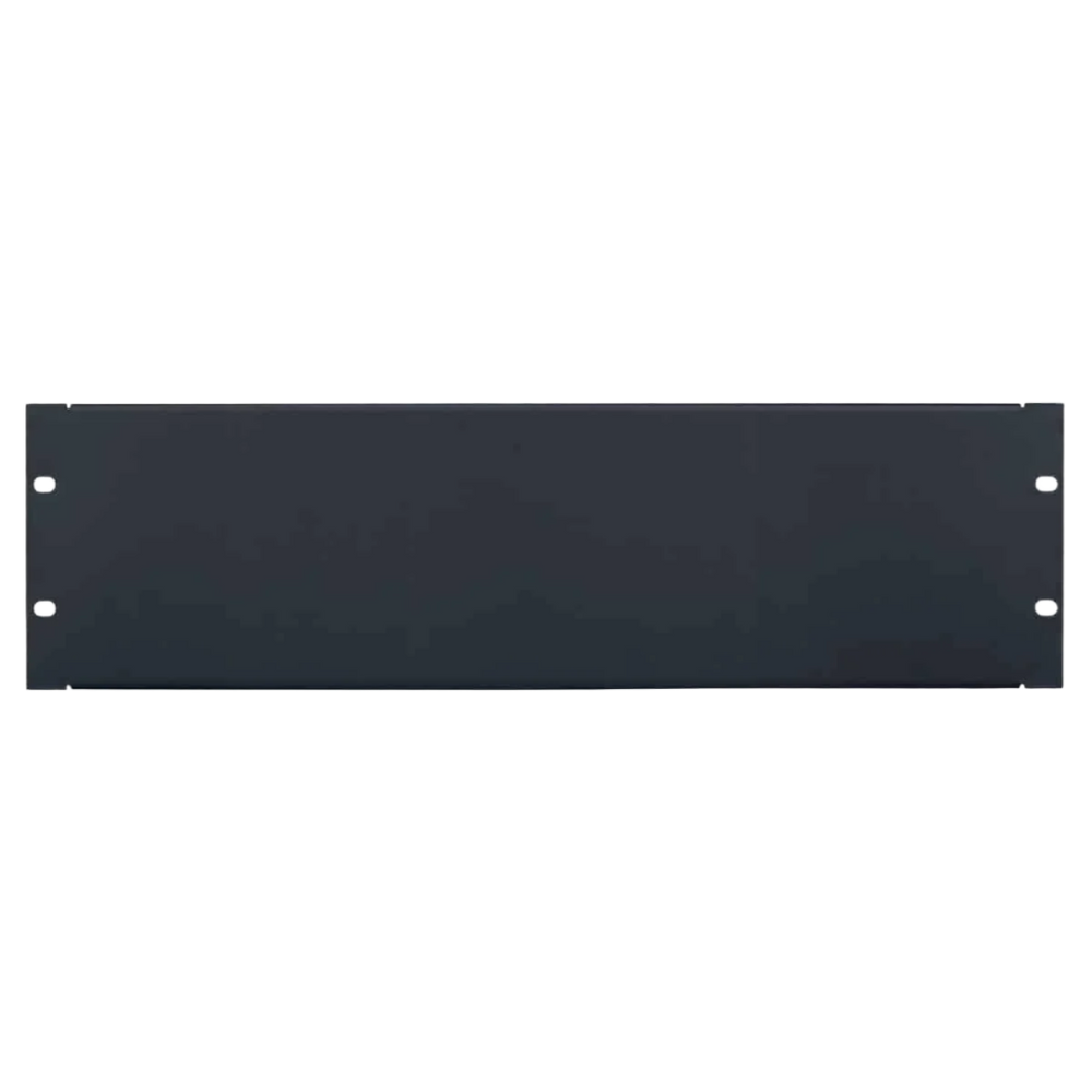 Blank 18-gauge steel panels with smooth black finish have a flange for added strength. Panels are available from 1/3 rack unit up to 6 rack units. Order individually or in multi-pack cartons. Product is securely wrapped — ideal for shipping and merchandising.