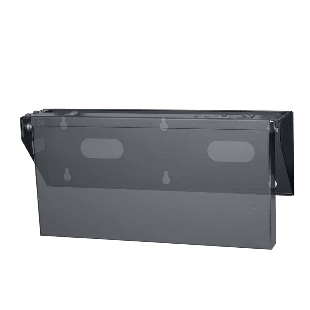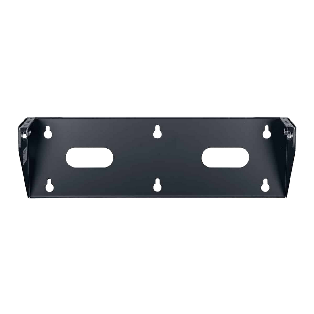 The quintessential space saving solution for one or two pieces of electronics, the VR-2 mounts to a wall or desk to hold equipment vertically. The open frame provides 2U rack space and accommodates numerous depths. Two units can be used together for four-point mounting. Includes one pair of 10-32 threaded rails. Black powder epoxy finish.