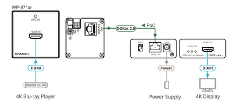 WP-871XR 4K HDR HDMI 1–Gang PoC Wall–Plate Transmitter Long Reach DGKat