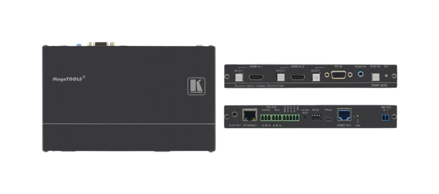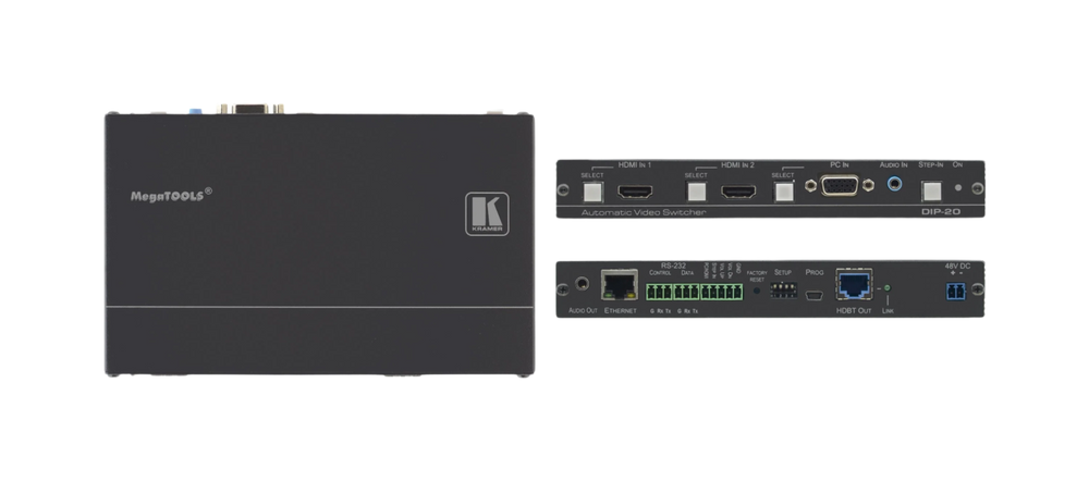 DIP 20 is a high−performance multi−format switcher transmitter of 4K video signals over extended−reach HDBaseT. Offering intelligent Maestro application, with priority and last−connected switching options, it automatically switches and operates room according to the selected switching scheme based on active video signal detection.