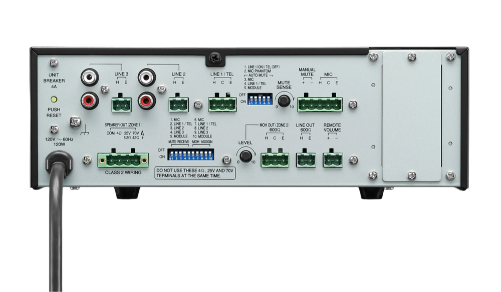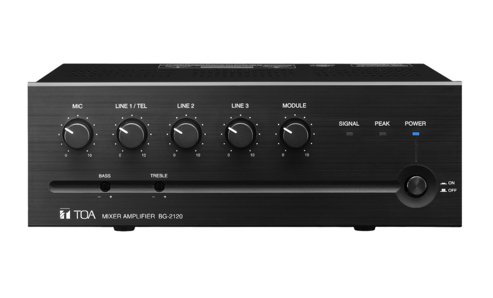 The BG-2060 is 60W Mixer/Amplifier has a newly engineered chassis, designed to not only look better, but perform better and most of all-install easier. Starting with removable euro-block connectors to make wiring a snap, we added assignable MOH/Second Zone source assignment and provided access to mute priority and other settings via rear panel DIP switches - no more "popping the top".Â