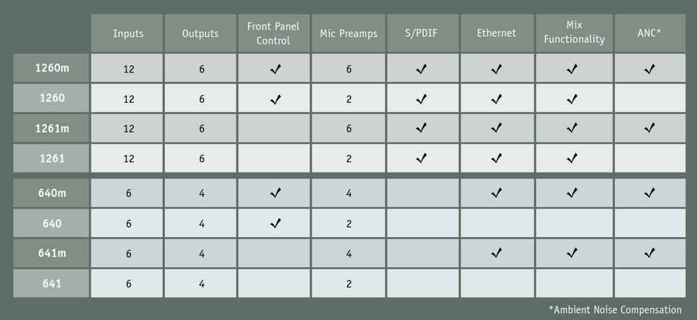 The 640m features a total of six inputs and four outputs. Inputs include four balanced mic/line switchable terminal block inputs and two mono-summed pairs of unbalanced RCA inputs. Hardware-controlled microphone gain allows adjustment of microphone gain per channel.
