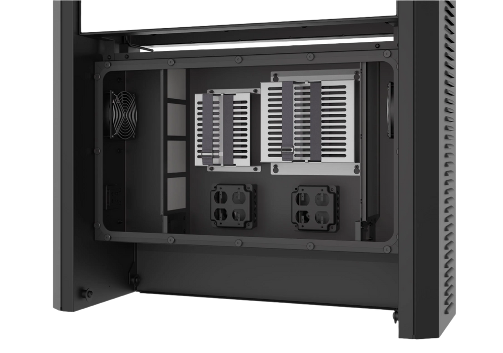 • IP55 Rated media cabinet provides a dedicated, spacious area for storing AV components, and the integrated fans provide active cooling