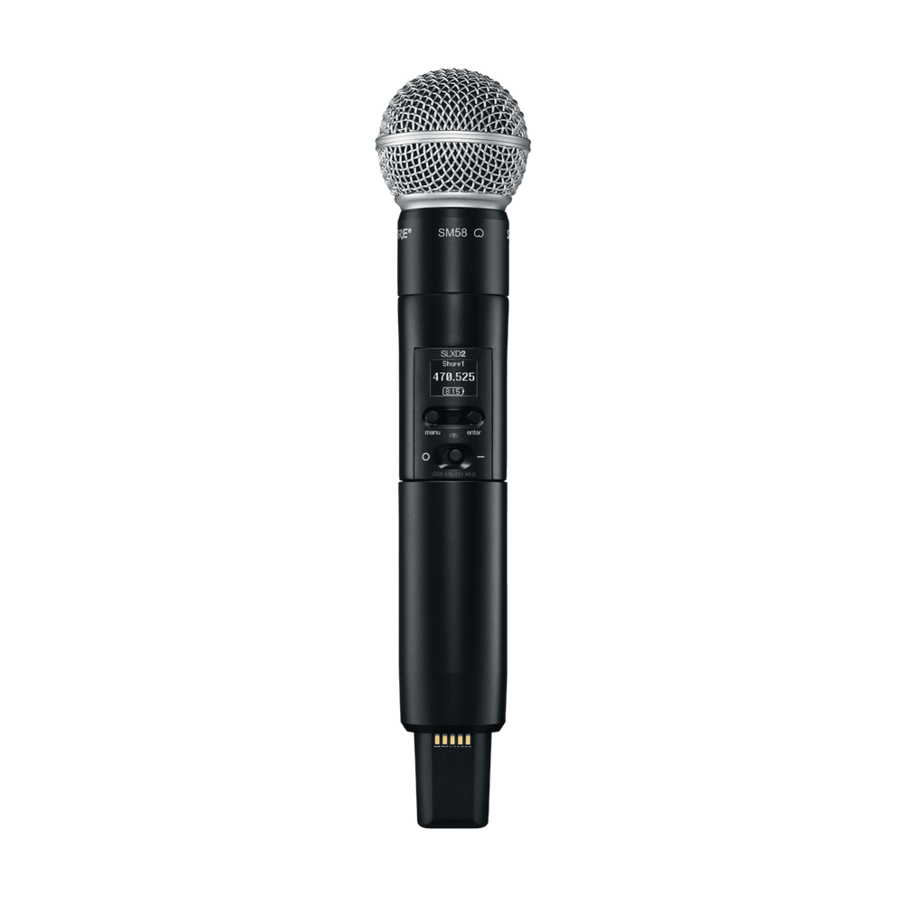 SLX-D® Digital Wireless delivers transparent, 24-bit digital audio and rock solid RF performance with easy setup and rechargeability options in a suite of versatile wireless system configurations. Featuring industry-leading digital wireless technology and design, the SLXD2 easily syncs with a wireless receiver. A variety of interchangeable vocal microphone choices guarantees the right solution for a wide range of applications, from day-long presentations to nighttime performances.