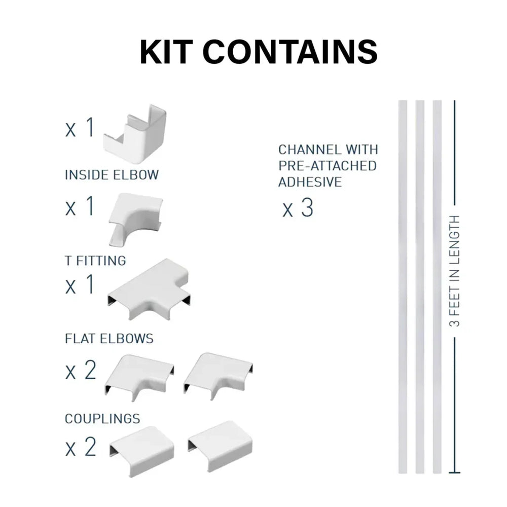 The mess and clutter of cords is no more with the Sanus Cable Concealment Kit II. It is perfect for hiding small bundles of home entertainment cabling, speaker wires, TV/video cabling and home office wiring.