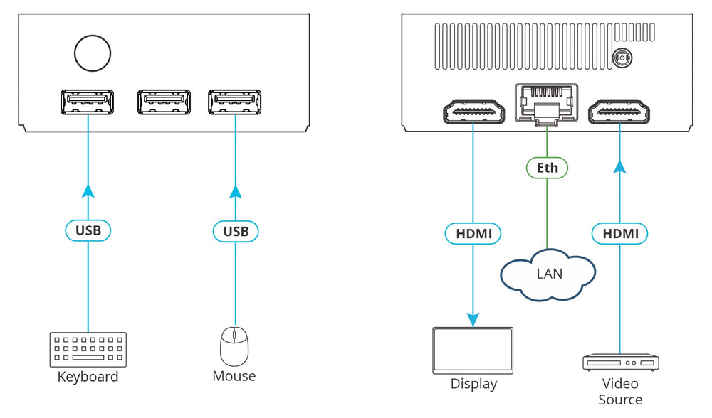 Meeting participants can display or stream full, uninterrupted video from their device, and even play YouTube® videos in full frame rate. Up to four participants can share their screens simultaneously on the main display either using the VIA app mirroring feature, iOS mirroring via AirPlay™, Windows & Android mirroring via Miracast™, or ChromeBook mirroring.